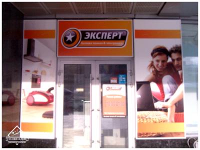 Оформление входной группы. Световые короба. Основа - оргстекло молочное 3мм., транслюсцентное изображение 1440 dpi, пластиковые профиля Квадро, задняя часть - ПВХ 4мм. Освещение - люминисцентные лампы.
